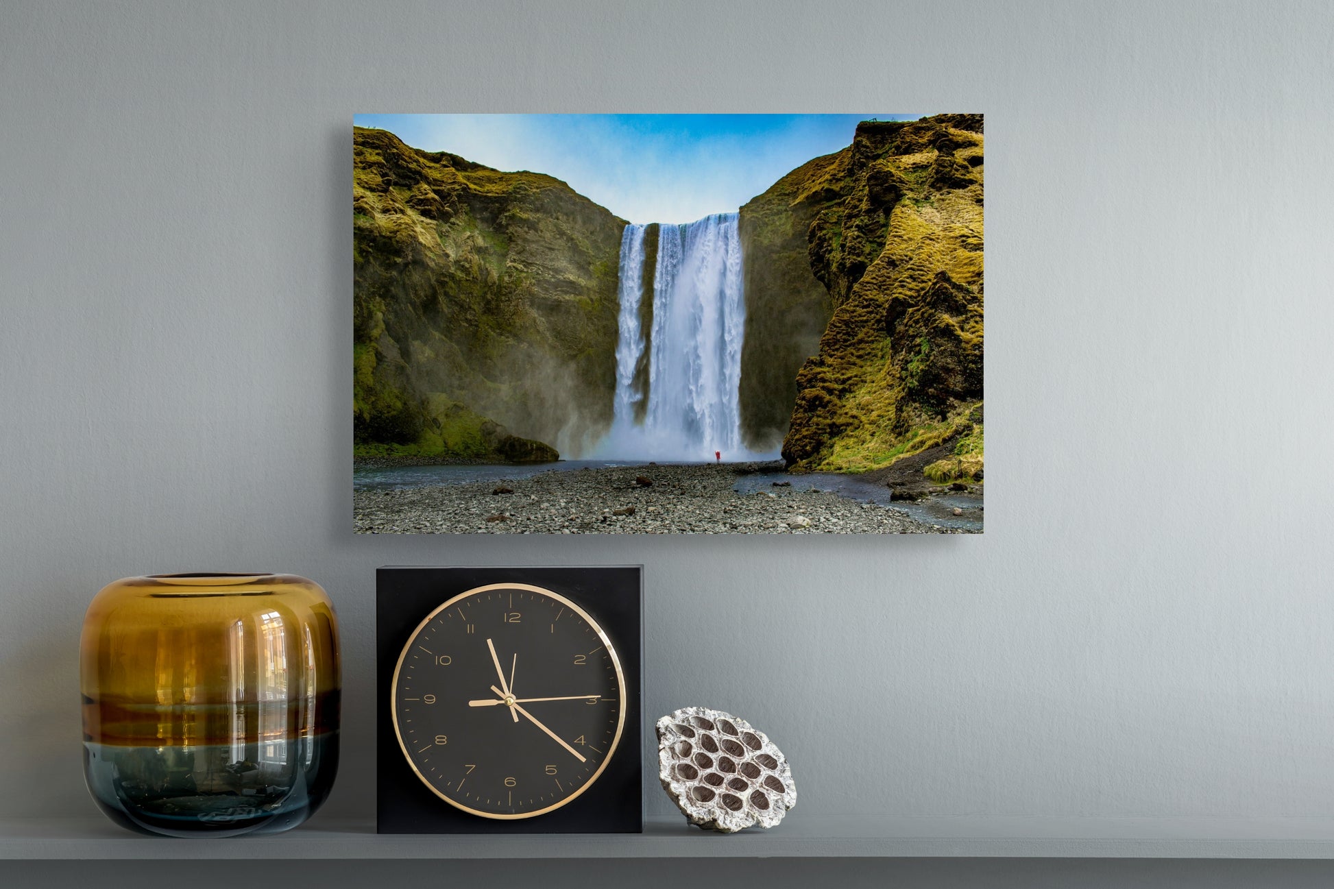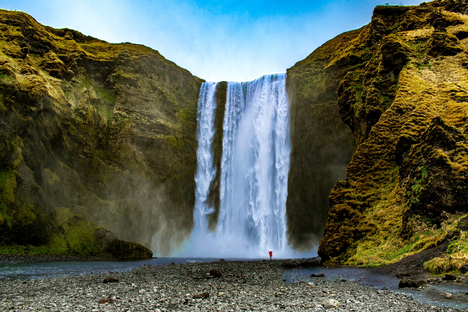 - Photographed at Skögafoss, southern Iceland, highlighting the waterfall’s massive scale